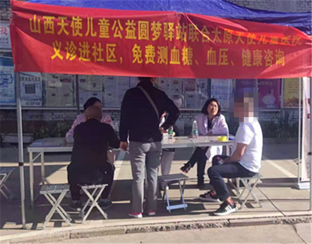 10月8日上午,太原天使儿童医院的义诊小队早早的来到了杏花岭区晋泉小区,7点半左右就开始整理义诊需要的设备,并为周边赶来的居民测血压、测血糖。