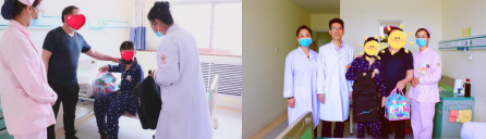 院领导和护理部人员一大早就为自闭症患儿小明(化名)送去了关爱。小明现在已经是在逐步恢复的阶段,在两个康复治疗后,小明现在都已经开始和大家沟通,还能聊聊上课的事情呢!小明的妈妈表示:“天使儿童真的帮了我们不少,真的幸运,能遇到这个医院,看到孩子一天天变得活泼、爱说话,我们真的好开心,真的特别感谢你们的照顾!”