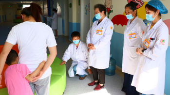 马燕茹医生一个病房接着一个的详细询问他们的治疗及恢复情况。特别是对有典型症状的几个患儿更是关怀备至,让孩子们抬腿、伸曲。和患儿家长一起谈论恢复情况,并从多年经验的角度,不时与院内其他医生交换意见,提出合理化治疗方案。让患儿更快更好的恢复。