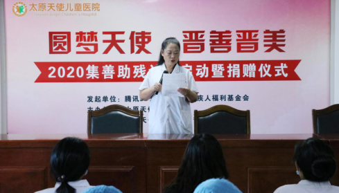 启动仪式上,太原天使儿童医院贾院长在发言中表示:圆梦天使·晋善晋美2020集善助残计划旨在为贫困残疾人在康复、教育、生活等方面提供救助,帮助残疾人更好地融入社会,重新回归学习与生活,实现自身价值。从建院起,太原天使儿童医院就一直坚持公益办院,此次“圆梦天使·晋善晋美”公益项目的启动,标志着太原天使在公益的路上,迈上了一个新的台阶。