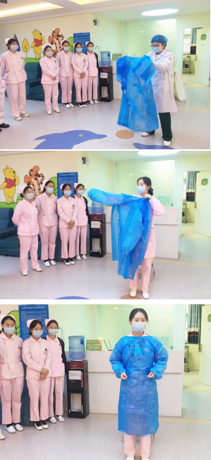 为加强医院疫情防控,有效保障医护人员及来院患儿和家长的健康安全,提高医护人员对突发公共卫生事件的应急反应能力及自我防护意识。昨天下午,太原天使儿童医院护理部组织全院医护人员技开展穿脱防护服、隔离衣培训工作。