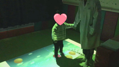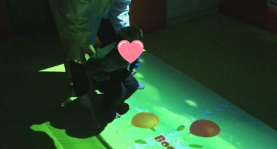 患儿在虚拟互动的时候与虚拟的投影影像环境能够互相影响,当患儿去碰触虚拟影像中的物体时,会有更真实的体验。