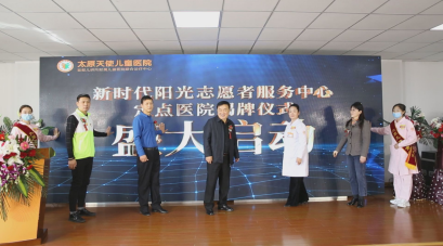 近日,以“助力儿童成长?守护孤独天使”为主题的活动——新时代阳光志愿者服务中心定点医院揭牌仪式暨2021山西省儿童疾病公益筛查活动在太原天使儿童医院盛大启动,新时代阳光志愿者服务中心院长王路刚、太原市福利生产中心林主任、太原天使儿童医院院长贾晋凤等出席了揭牌仪式,太原天使医护人员与部分患儿家长到场参加了揭牌仪式。