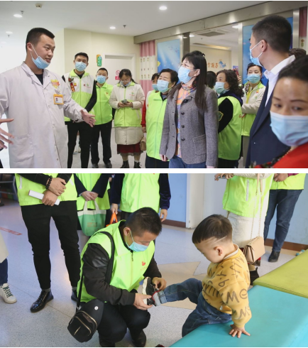 揭牌仪式后,新时代阳光志愿者一行在太原天使儿童医院院领导的陪同下到住院部看望了住院患儿,并现场对患儿进行了帮助。