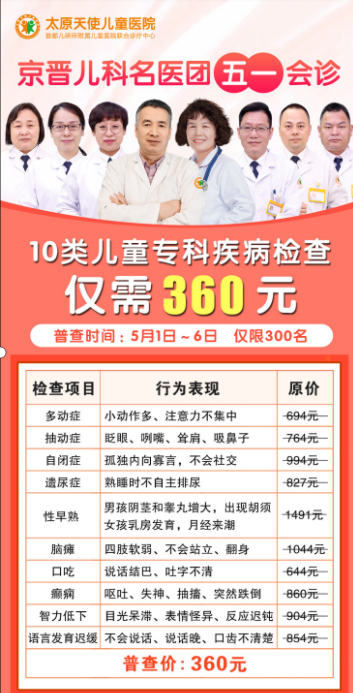 为了减轻患儿家长的经济负担,在此次会诊周期间,中华少年儿童慈善救助基金会联合太原天使儿童医院推出多项检查费用优免活动:10类儿童专科疾病检查仅需360元、矮小症、儿童身高骨龄专科检查仅需185元。精准检查,联合会诊,对症治疗。