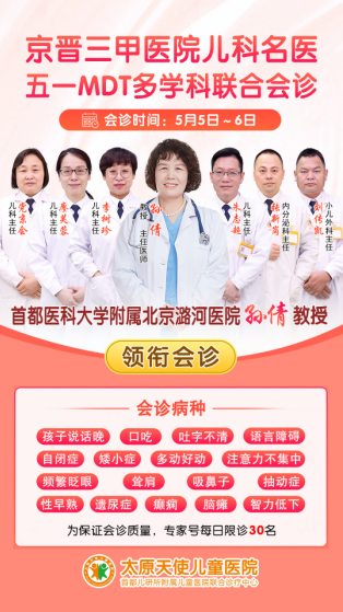 目前,京晋儿科医生五一会诊仅剩后两天,明天、后天(5日、6日),都医科大学附属北京潞河医院孙倩医生将亲临太原天使会诊,现在所剩名额不多,请需要看诊的家长抓紧预约。预约热线:0351—7685555。