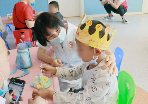 北京中医药大学附属中西医结合医院汪云医生也亲临活动现场,与孩子们一起共度节日,同时现场为家长们答疑解惑。随后,太原天使儿童医院儿科医生张新岗主任、廖芙蓉主任等医生一起为孩子们切蛋糕、唱祝福歌,祝福孩子们节日快乐!