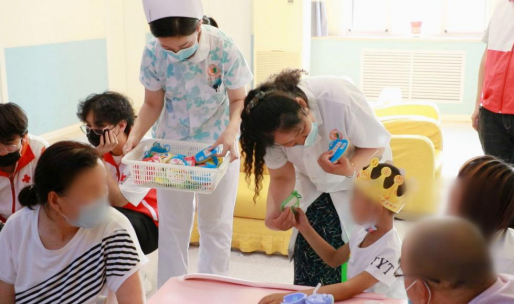 在接下来的游戏中,医护人员与孩子们一起互动、配合,玩得不亦乐乎,现场气氛热闹、欢快。