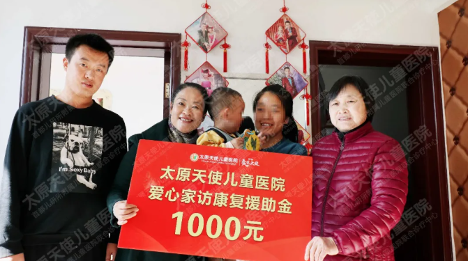 此次家访,医院为恩恩带来了玩具、识字卡、米面油,以及1000元后续治疗金,为孩子后续治疗减轻压力。
