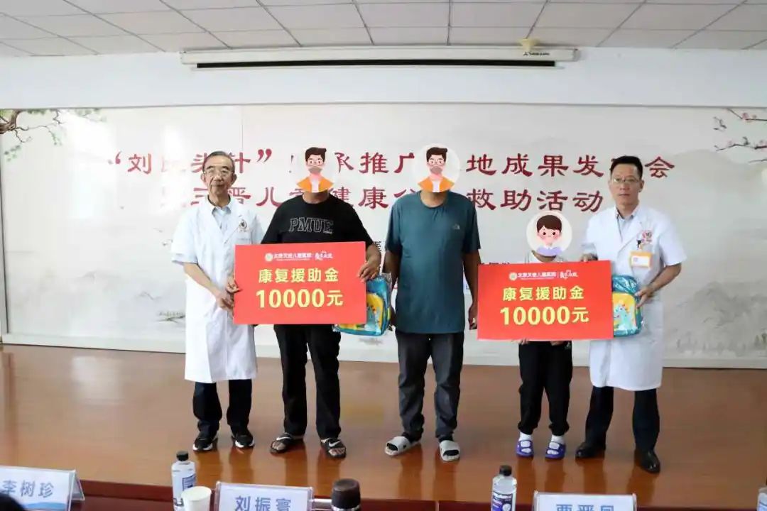 借此次“刘氏头针”师承推广基地成果发布会的契机,在新学期来临之际,太原天使儿童医院开启了三晋儿童健康救助公益活动。在发布会现场,太原天使儿童医院为两名家庭困难患儿送上了10000元康复援助金和爱心书包,帮助他们减轻经济负担,接受专业科学的治疗,早日恢复健康。