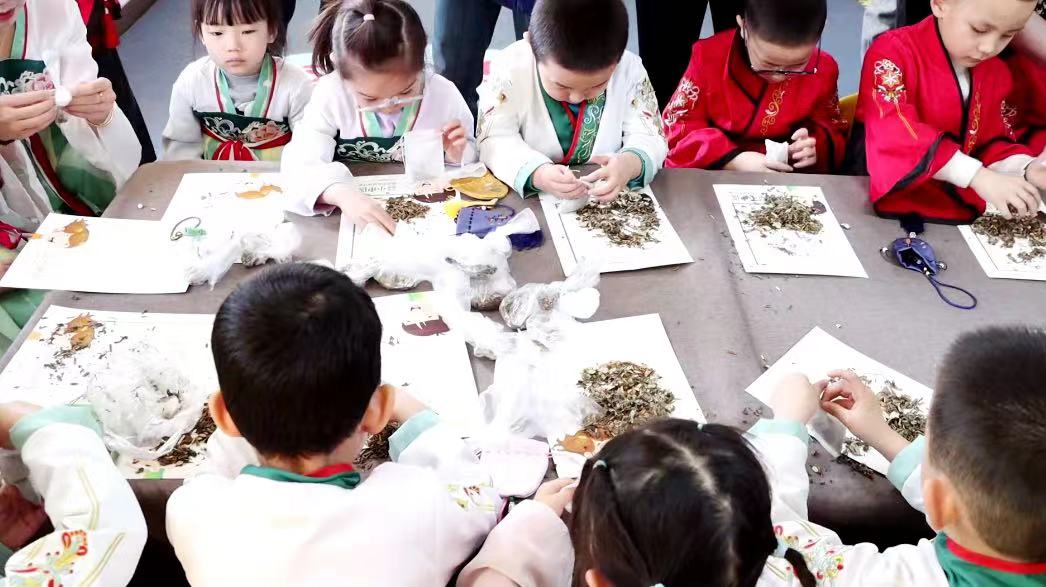 小朋友们还DIY了中药小香囊,感受到了中草药的香气与神奇力量,还了解了神农氏识百草的传说。