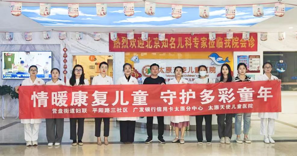 5月28日上午,营盘街道妇联、平阳路三社区以及广发银行信用卡太原分中心携手走进太原天使儿童医院,为正在康复中的特殊儿童们带来了一份特别的关爱与祝福。太原天使儿童医院院长贾晋凤、护理部主任罗瑞娟、市场部主任崔志强等人给予了热情的接待与配合。